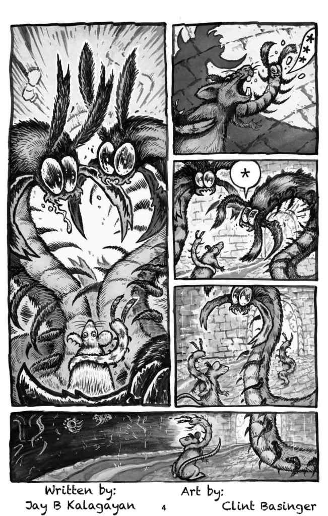 “Jay Kalagayan is the creator and writer for MeSseD comics. He has created an under-the-ground world, which is realistic and fantastic at the same time. It is rich with creatures, giant worms, and large talking cockroaches. His characters are very relatable and the comics have a personal feel. His lead characters are females, that his daughters can look up to. He works with artist Dylan Speeg on his regular series.. and Clint Basinger as his cockroach artist on the Intrusion. “