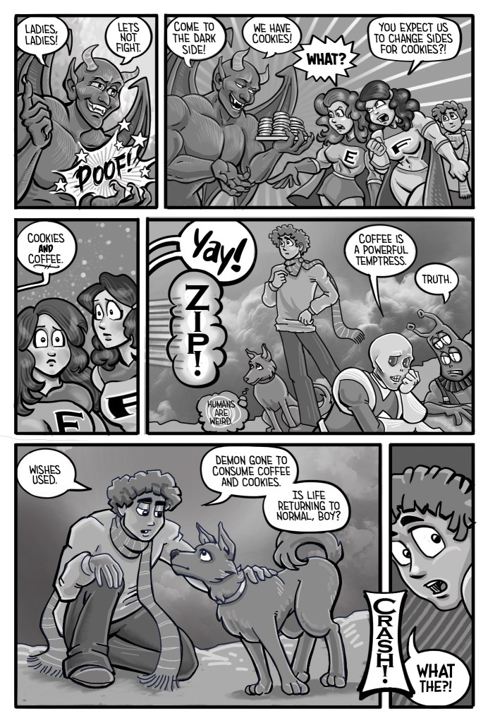The first volume of the Sunday Jam! See where it all started! What starts out as a boy and his dog playing frisbee in the park turns into an epic adventure involving wish demons, aliens and. . .pickle-bots?!?!?!