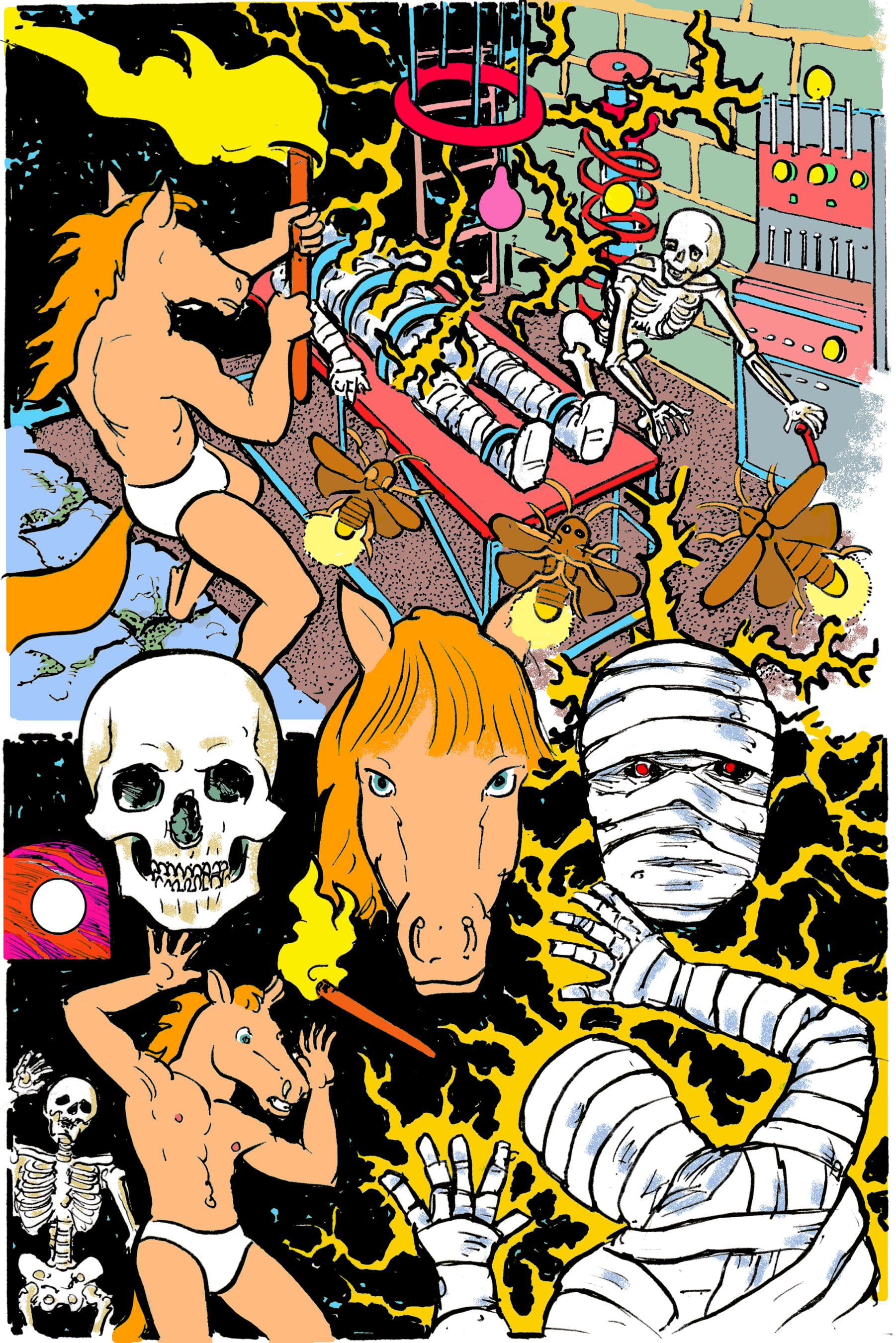 Horseman travels through a fantasy environment encountering several creatures along the way in this surrealistic wordless adventure. Rob Imes said: “I really think you ought to mail a copy of this issue to the Eisner Awards.”