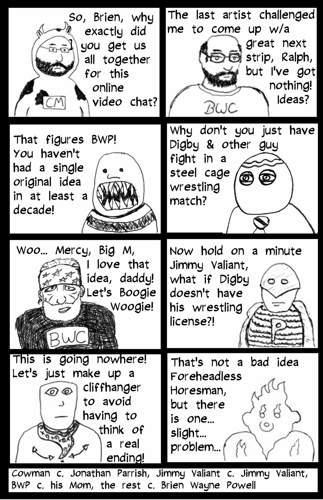 Cowman © Jonathan Parrish; Jimmy Valiant © Jimmy Valiant; Sharkmouth, Magnet Man, Captain Pie, Foreheadless Horseman, and Solar Bear © Brien Wayne Powell; Brien Wayne Powell © his mom