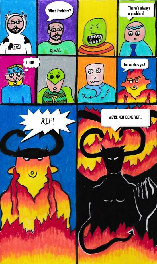Cowman © Jonathan Parrish; Jimmy Valiant © Jimmy Valiant; Sharkmouth, Magnet Man, Captain Pie, Foreheadless Horseman, and Solar Bear © Brien Wayne Powell; Brien Wayne Powell © his mom