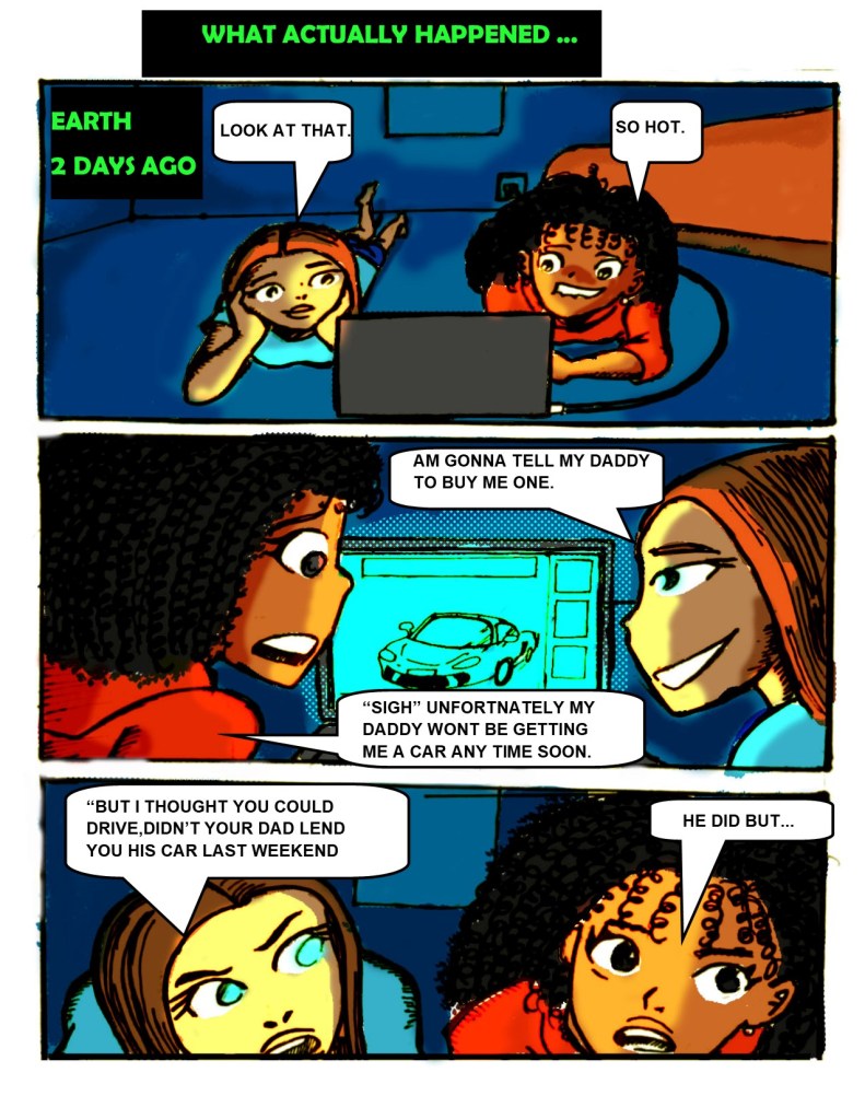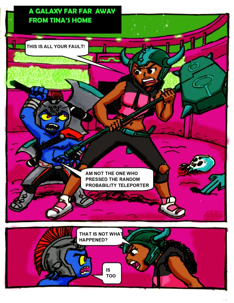 First I sketch out thumbnails in a sketch book. Then I write a script. From there I draw a comic.
