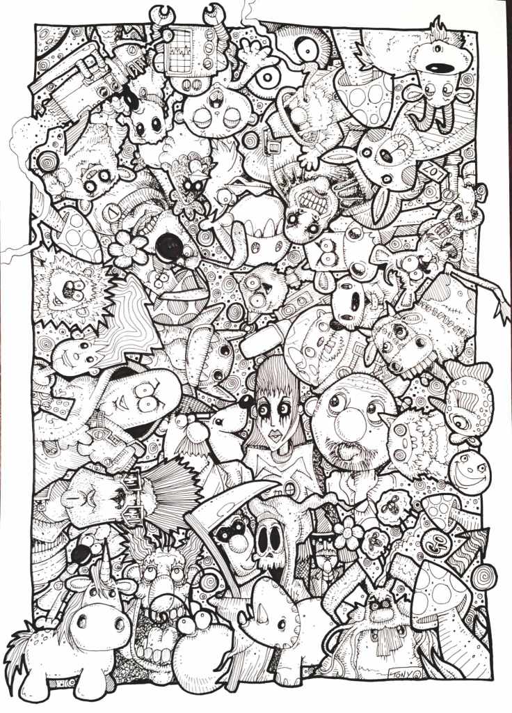 Thinking, doodling, penciling, inking or painting.